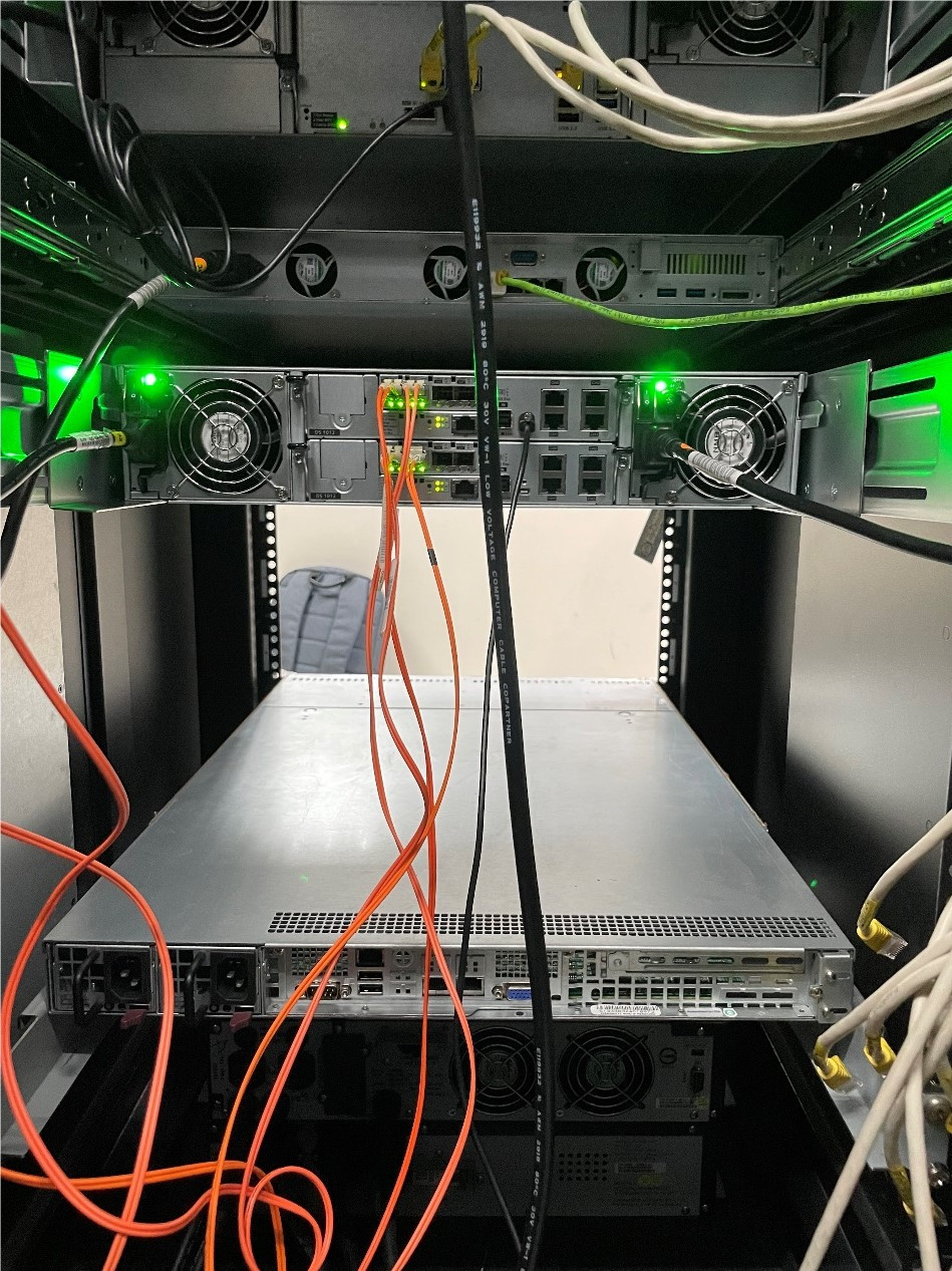 今天與客戶約好時間到場安裝設備,經由溝通後安排技術人員到台北某大學進行新機安裝,由於疫情期間到達校園入口就需先進行酒精消毒以及體溫測量,進入學校後可能因為疫情期間都改為線上教學,校園反而安靜了下來,之後便跟著老師到專門放置機器設備的機房,今天的任務是客戶舊有設備效能及空間已不足以應付現階段需求故要擴充現有儲存空間,並希望能有效提升存取的效能及穩定性。