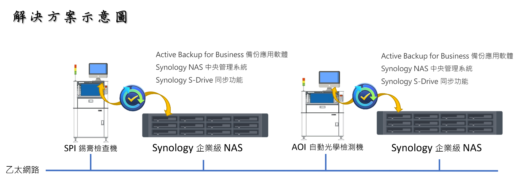 科技大廠生產線使用Synology NAS進行重要資料備份,協助製造產線對於品管控制檢測機台製程資料保存,