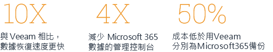ü IT 可以通過單一管理平台,管理所有端點和 Microsoft 365 數據的備份和還原,包括 Exchange Online、OneDrive、Sharepoint 和 Teams