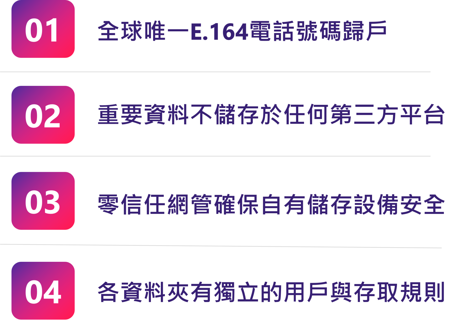 þ以電話號碼進行全球唯一的用戶與設備編碼並用EAR ZT PEP建構分散式儲存網路互為備援,建構高韌性零信任安全儲存網路