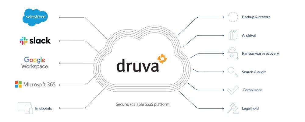 Druva inSync提供全面的資料保護,以降低資料丟失風險,例如跨多個 SaaS 應用服務(包括Microsoft 365、G Suite、Salesforce 和 Slack)的意外和惡意刪除,以及勒索軟體的攻擊,並具有自動且集中管理的備份,和靈活的恢復選項。